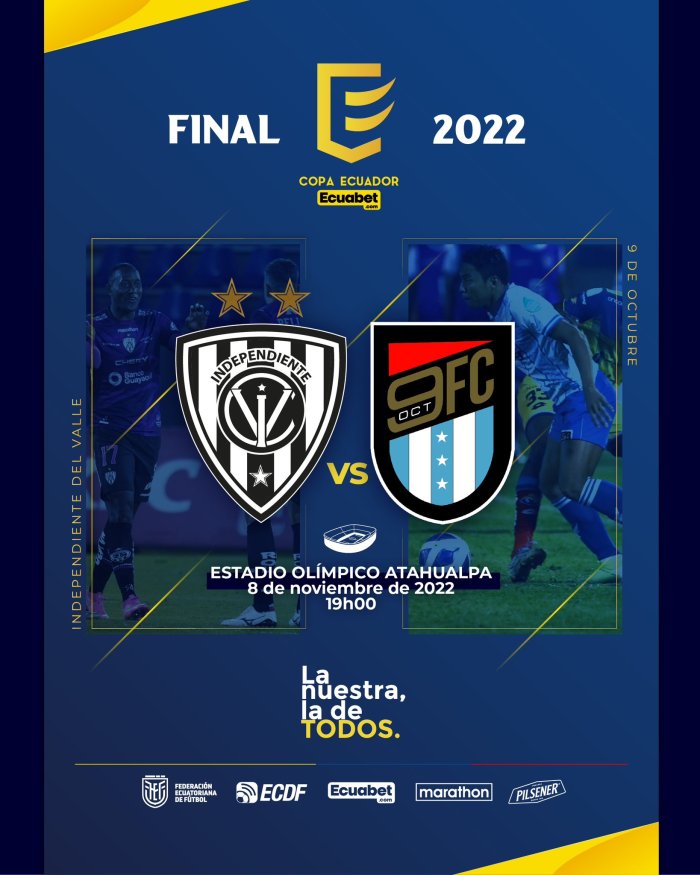 El 9 de Octubre FC saldrá este martes en procura de la hazaña en la final única por el título de la Copa Ecuador contra Independiente del Valle, reciente campeón de la Copa Sudamericana.