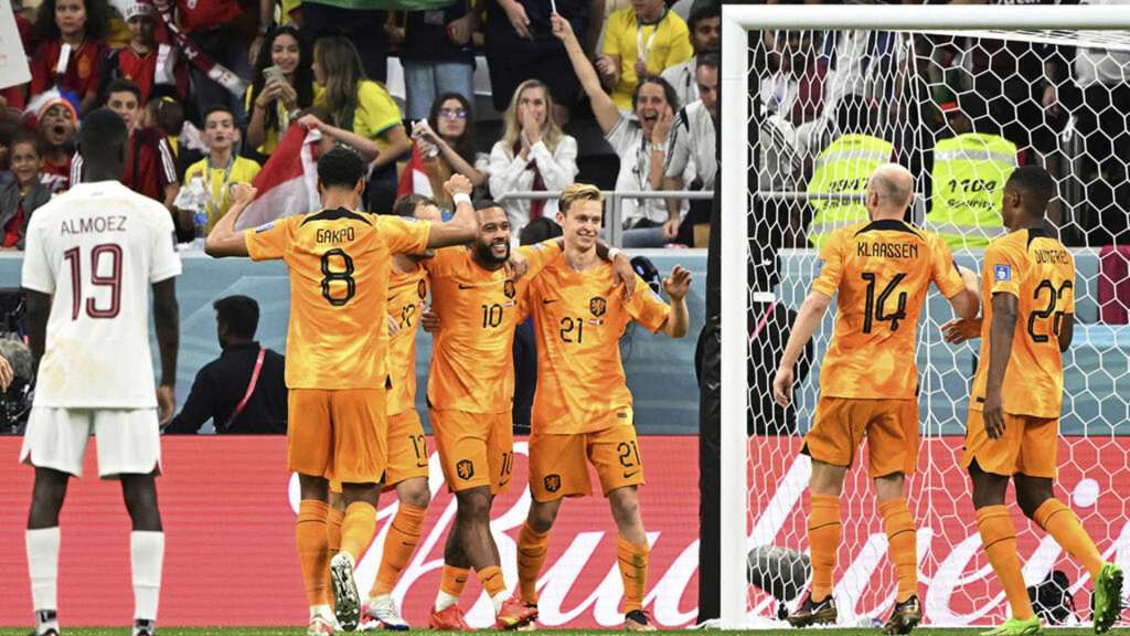 Cody Gakpo y Frenkie de Jong anotaron hoy martes en la victoria de Países Bajos sobre Qatar 2-0 en el Grupo A de la Copa Mundial en Doha, lo que permitió a los holandeses pasar a octavos de final como líderes de grupo con siete puntos.