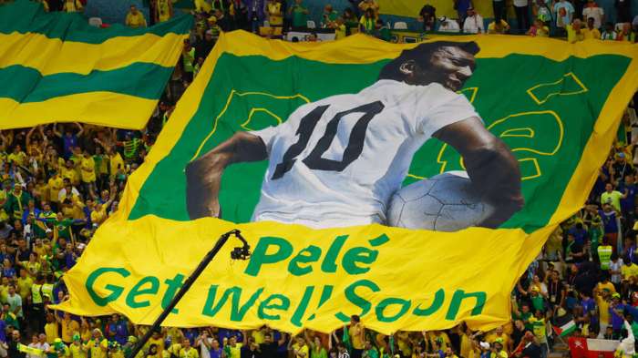 En Qatar, la imagen de un joven Pelé, festejando goles y levantando trofeos con la selección de Brasil, ha aparecido en camisetas, banderas y carteles de los aficionados, incluidos los que concurrieron el lunes a un partido del Mundial ante Corea del Sur.