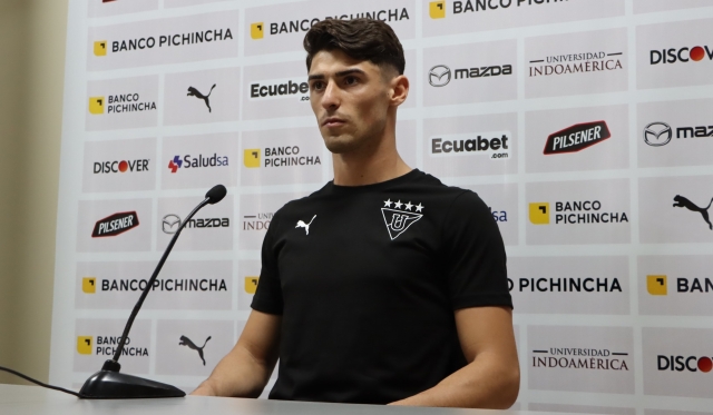 Facundo Rodríguez, flamante refuerzo argentino de Liga Deportiva Universitaria de Quito, habló con los medios de comunicación este día martes, en rueda de prensa, después de superar los chequeos médicos de rigor.