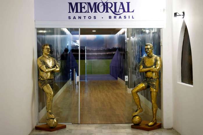 A la entrada del espacio donde se encuentran sus restos mortales, que fueron embalsamados, hay dos estatuas doradas de Pelé, idénticas, en las que aparece vestido de corto, de brazos cruzados, sonriente y con la pierna derecha sobre una pelota.