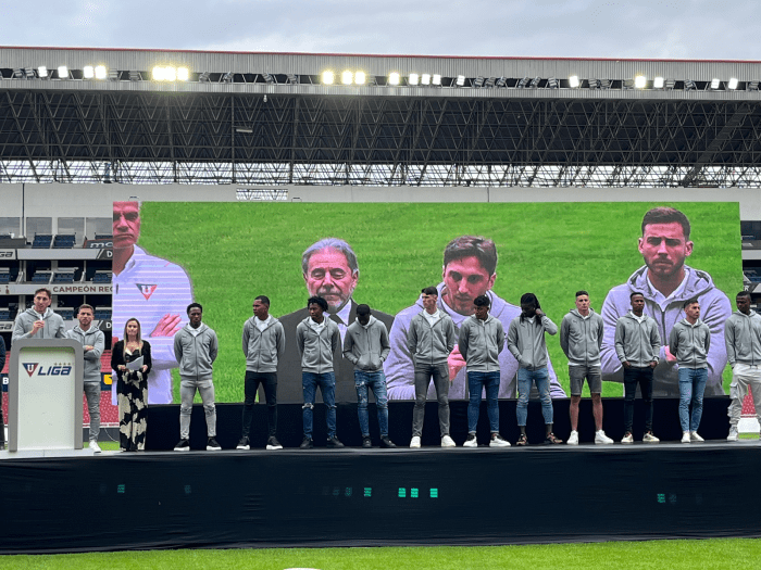 Liga Deportiva Universitaria de Quito realizó la tarde de este martes 10 de enero, la presentación oficial, desde el Estadio Rodrigo Paz Delgado, de sus 12 refuerzos ya confirmados para afrontar los tres torneos en los que competirá en la temporada 2023.