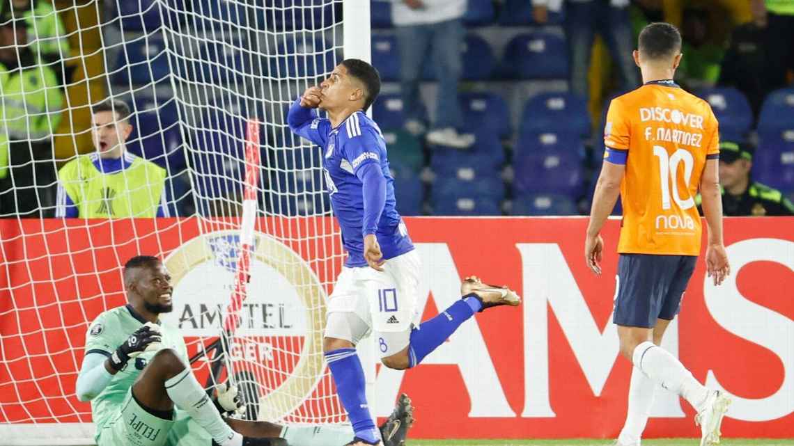 El equipo ecuatoriano, que cargaba a cuestas el 0-0 de la ida, tomó la ventaja con un tanto del atacante panameño Ismael Díaz, pero los colombianos lograron ganar el partido con las anotaciones del goleador Leonardo Castro y del creativo Daniel Cataño ante más de 30.000 espectadores que colmaron las tribunas del estadio El Campín.