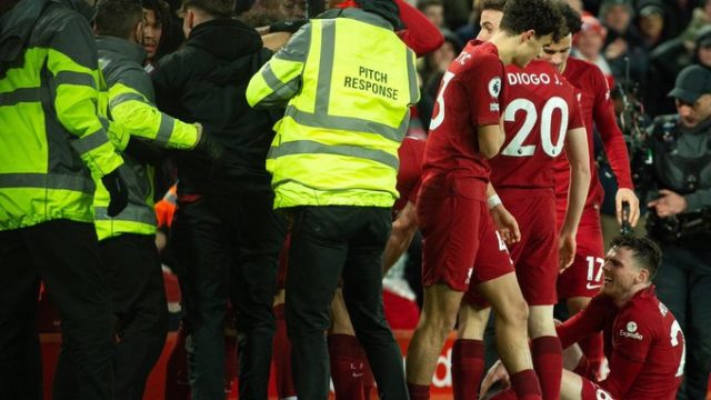Así, el aficionado ‘red’ que en un momento de euforia quiso celebrar la goleada de su equipo con sus ídolos, podría ser expulsado de Anfield y de todos los estadios de la Premier League para siempre.