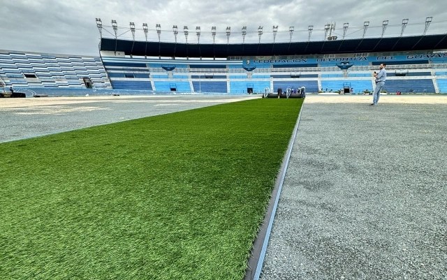 El estadio Modelo Alberto Spencer continúa con los trabajos de remodelación y ahora se ha dado un nuevo paso. Al país ya han arribado los rollos de césped artificial que serán colocados de manera paulatina en el reducto.