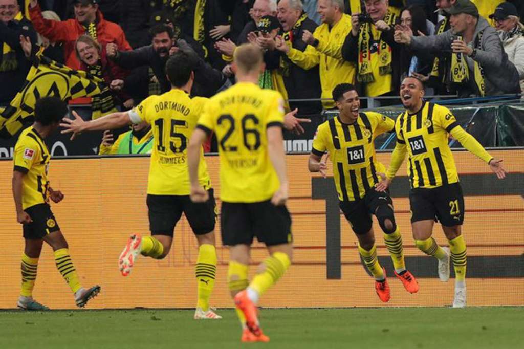 Borussia Dortmund se apoderó este sábado del primer lugar de la Bundesliga al golear al Eintracht Frankfurt por 4-0 como local y sacando provecho de la derrota por 3-1 encajada más temprano por el Bayern Múnich ante el Mainz.