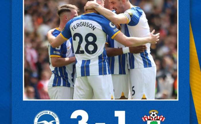 Brighton todavía tiene dos compromisos en el calendario de la Premier League. Uno será el próximo miércoles 24 de mayo ante el flamante tricampeón de la liga británica Manchester City en el Falmer Stadium y cierra con el Aston Villa el domingo 28 del mismo mes en el Villa Park.