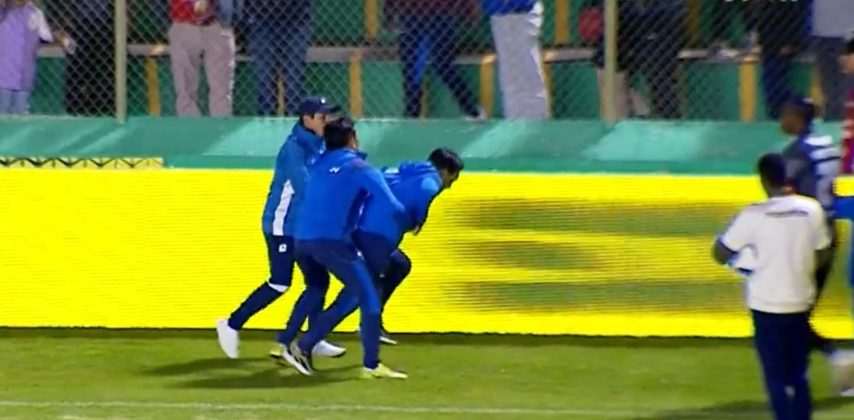 Integrantes de su cuerpo técnico e incluso el capitán Walter Hinostroza, portero del club, tuvieron que detenerlo para que se tranquilice.