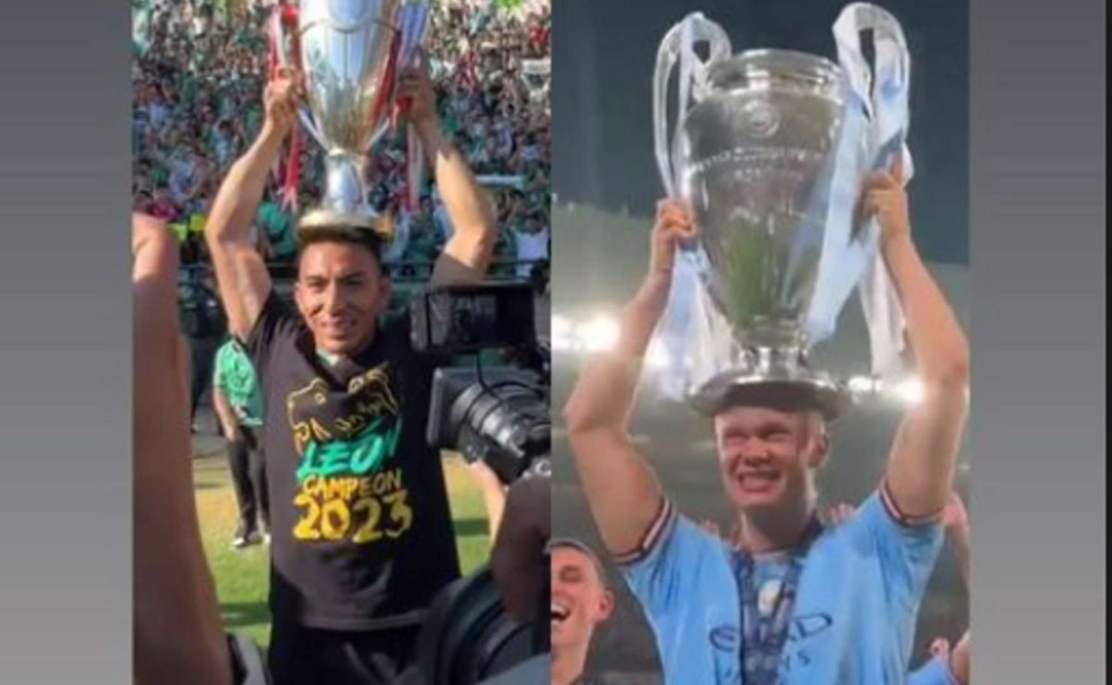 En la publicación de Ángel Mena se puede ver al jugador ecuatoriano celebrando el título obtenido con el León, mientras que en la otra fotografía está el mejor goleador del mundo y futuro balón de oro, Erling Haaland.