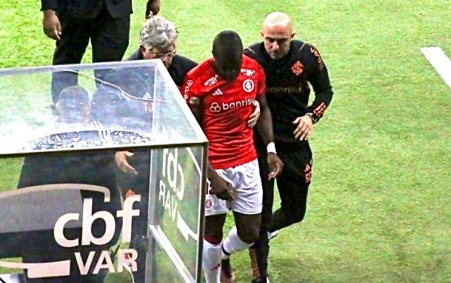 Imágenes de TV captaron el momento en el que empuja a Magrão (ídolo del club) y se retira hacia los camerinos.