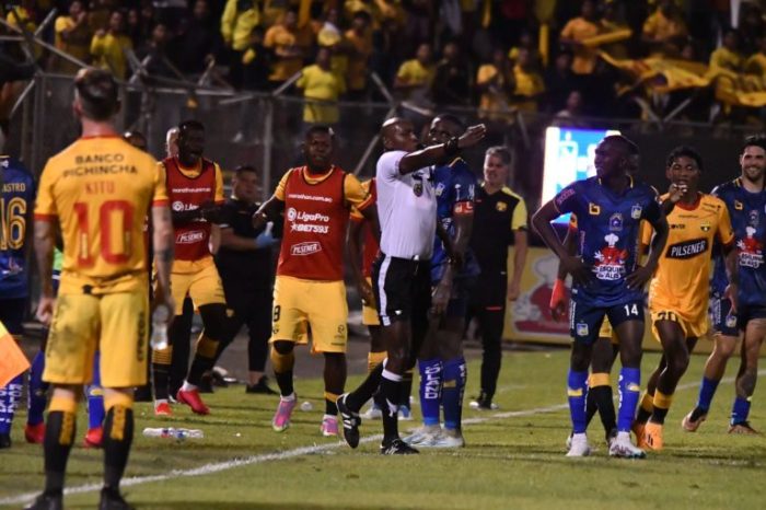 Facundo Castelli, jugador del Delfín, fue contundente con la actuación del árbitro Augusto Aragón y el VAR respecto a la decisión que derivó al penal a favor de Barcelona SC al minuto 90+9 y posterior empate del partido por parte de los amarillos jugando con 9 elementos.