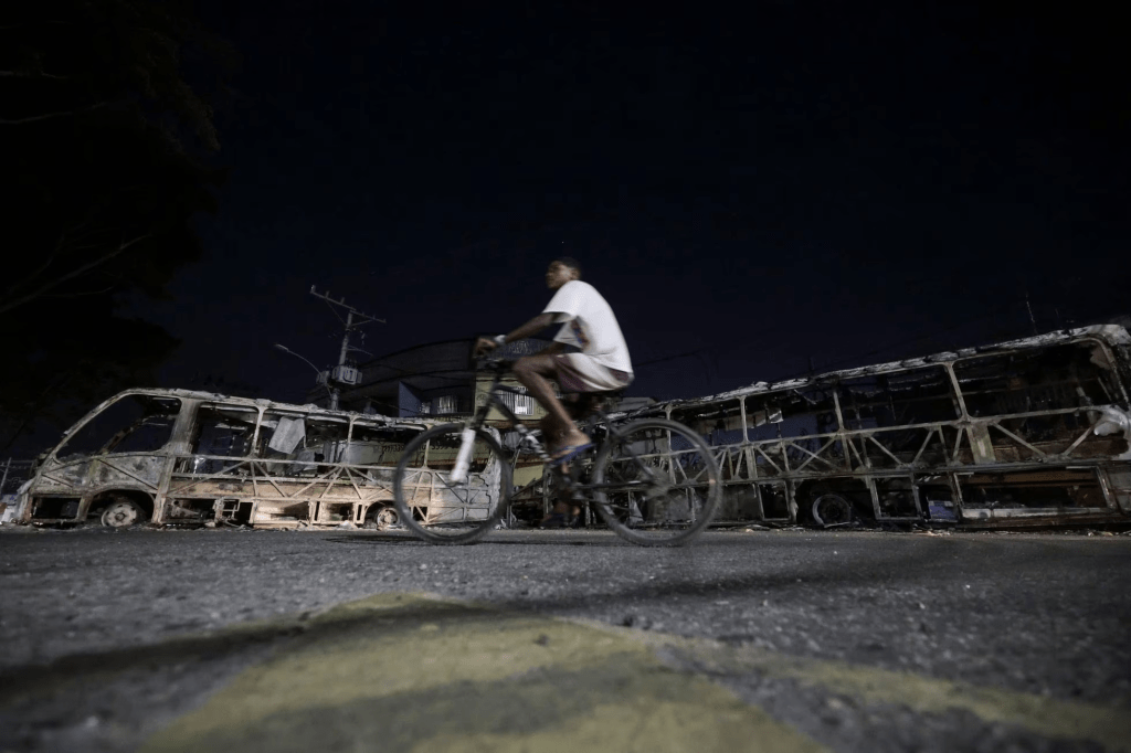 Según el periódico O Globo, se vivió uno de los peores ataques criminales en la historia de la ciudad carioca cuando un grupo parapolicial prendió fuego a 35 colectivos de línea en barrios controlados por las milicias como lo son Guaratiba, Inhoaíba, Paciencia, Campo Grande y Santa Cruz, dado que uno de los líderes, Matheus da Silva Rezende, había sido asesinado a tiros por la fuerza de seguridad estatal.