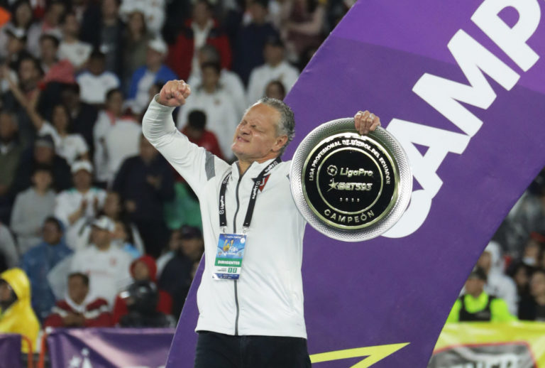 Esteban Paz, directivo de Liga Deportiva Universitaria de Quito, atendió a la transmisión de TV y expresó su alegría por el doblete logrado por los Albos: la CONMEBOL Sudamericana y la LigaPro de Ecuador.