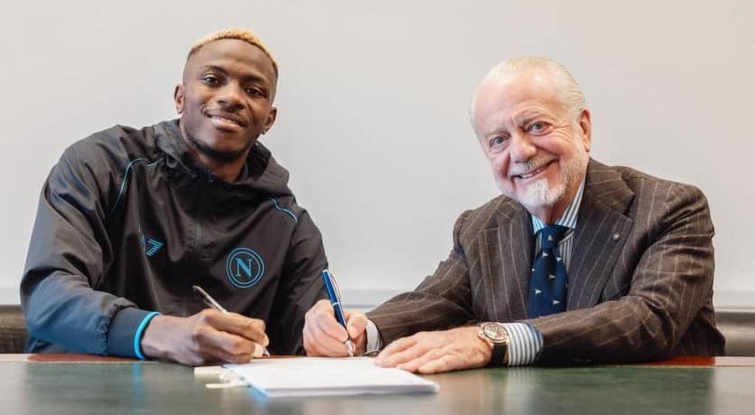 El Nápoles ha anunciado este sábado la renovación de su estrella a través de un mensaje en sus redes sociales en el que aparece Osimhen estrechando la mano del presidente del club partenopeo, Aurelio De Laurentiis. De esta forma se acabaron las especulaciones sobre el futuro del astro nigeriano.