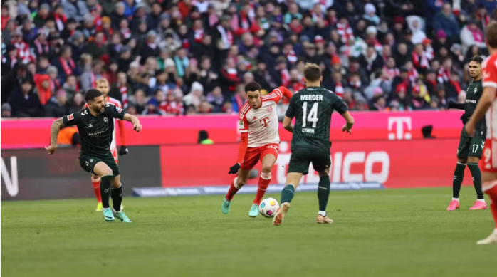 Llegábamos al tramo final con un 0-1 en el marcador para el Bremen. Leroy Sané probó suerte en un golpeo de falta en la frontal. Sin embargo, este se fue por encima del larguero. Mathys Tel estuvo cerca de poner el 1-1. Un remate de cabeza en el flanco izquierdo de Tel estuvo a punto de ser el gol del empate. Zetterer con ayuda del palo logró sacar el tiro. Tras cinco minutos de descuento, el encuentro acabó con victoria para los verdiblancos. Una derrota clave para ellos y un mazazo para los bávaros.