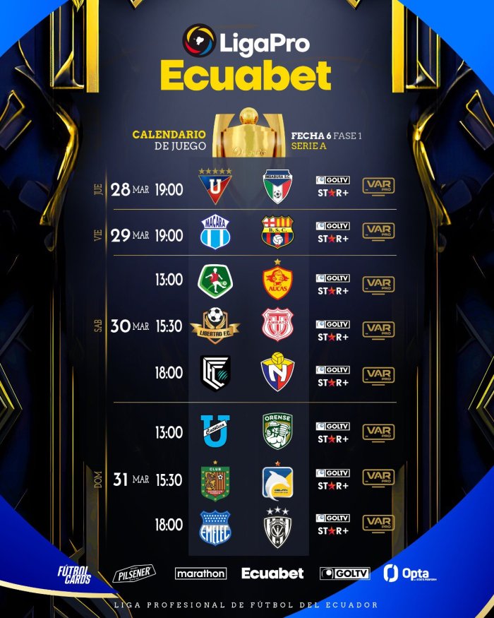 Sexta fecha y las cosas empiezan a ponerse candentes, ya que el torneo es corto y equipo que saca distancias al inicio, suma muchas opciones de ganar la etapa. Cerrarán la jornada y con resultados conocidos, los líderes Emelec e Independiente del Valle, el resto espera un empate, ellos buscarán los 3 puntos.