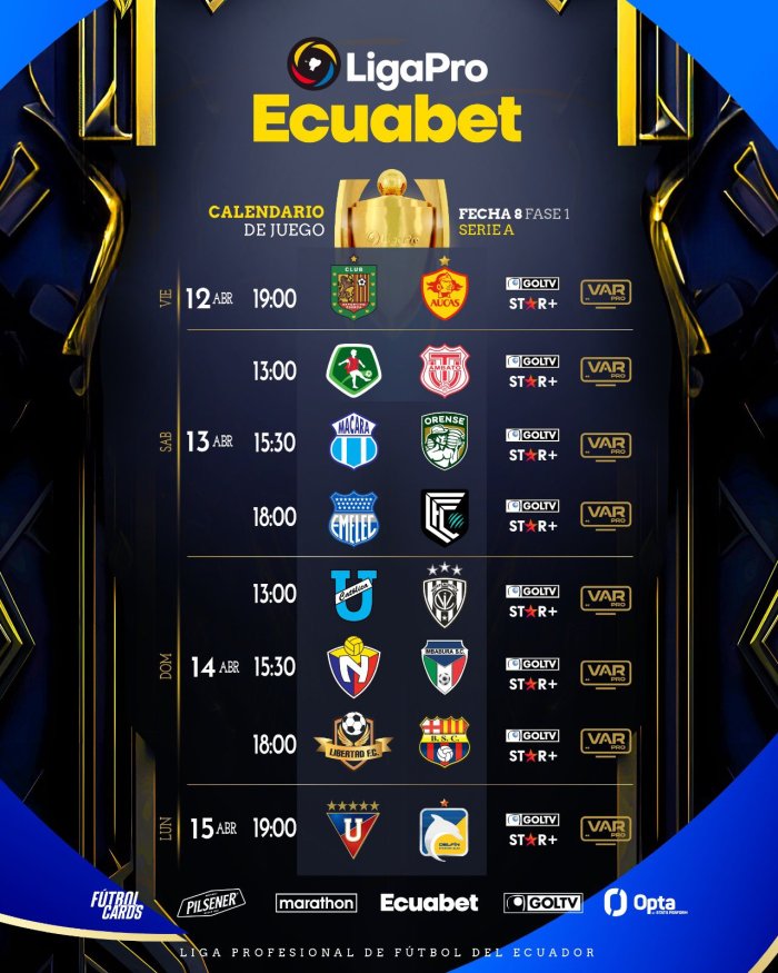 Octava fecha en Fase Uno, Aucas defiende la punta por segunda ocasión y abre la jornada en una visita accesible, ante un Deportivo Cuenca en horas bajas; los escoltas Independiente del Valle y Universidad Católica jugarán entre sí, abriendo la jornada del domingo, con resultado conocido.