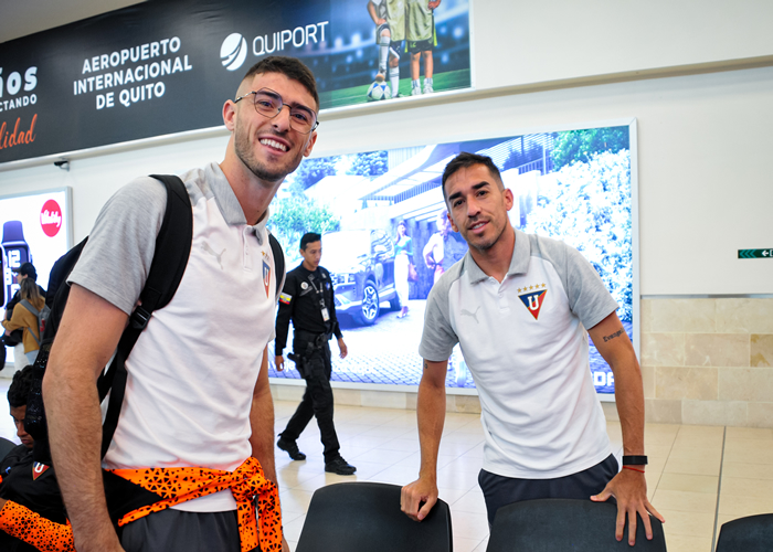 Liga de Quito arribó a Colombia este lunes para enfrentar a Junior y fue recibido con una cálida bienvenida por parte de su hinchada, que con cánticos mostraron su apoyo a toda la delegación.
