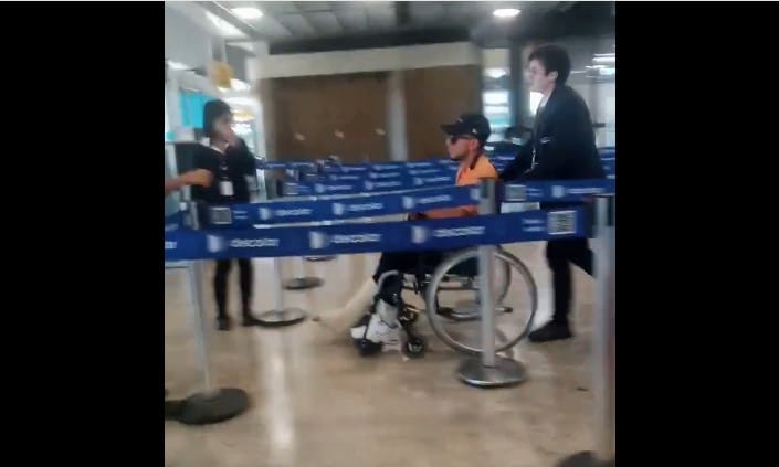 Ahora se dio a conocer un video en donde se ve al jugador en silla de ruedas embarcando el vuelo de regreso a Guayaquil.