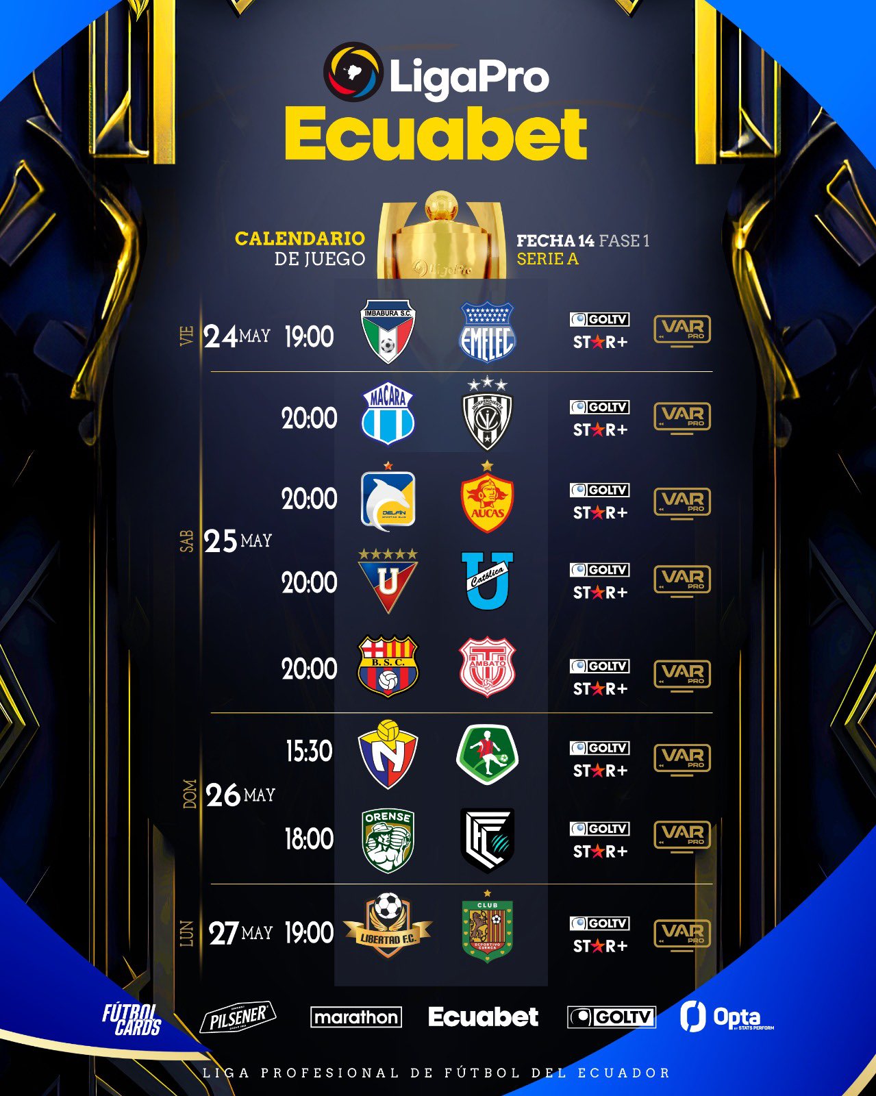 Fecha 14 en la Fase Uno, primera fecha para decidir al ganador, Independiente del Valle parte con ventaja en una pelea entre tres equipos, visitará a Macará, mientras que Aucas viaja al calor de Manta para enfrentar al Delfín y Barcelona será local ante Técnico Universitario.