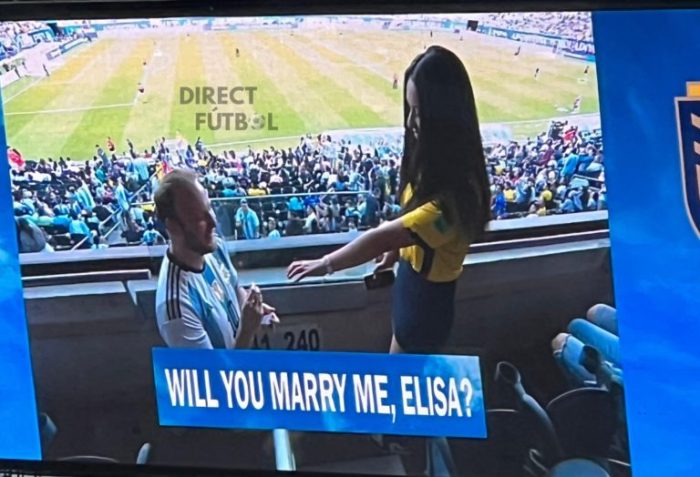 Y es que HUBO UNA PROPUESTA DE MATRIMONIO en las gradas del estadio durante el entretiempo.