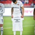 El zaguero uruguayo de LDU, Gian Franco Allala, saltó a la cancha con una camiseta en homenaje a Juan Izquierdo, su compatriota y jugador de Nacional uruguayo que falleció el martes en Brasil.