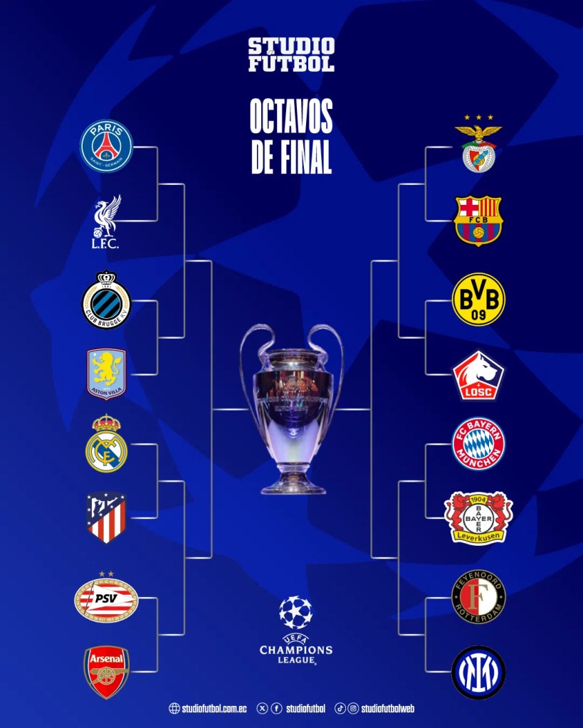 En el sorteo realizado esta mañana en la sede de la UEFA en Nyon-Suiza, quedaron definidos los cruces de los octavos de final de la UEFA Champions League 2024-25: