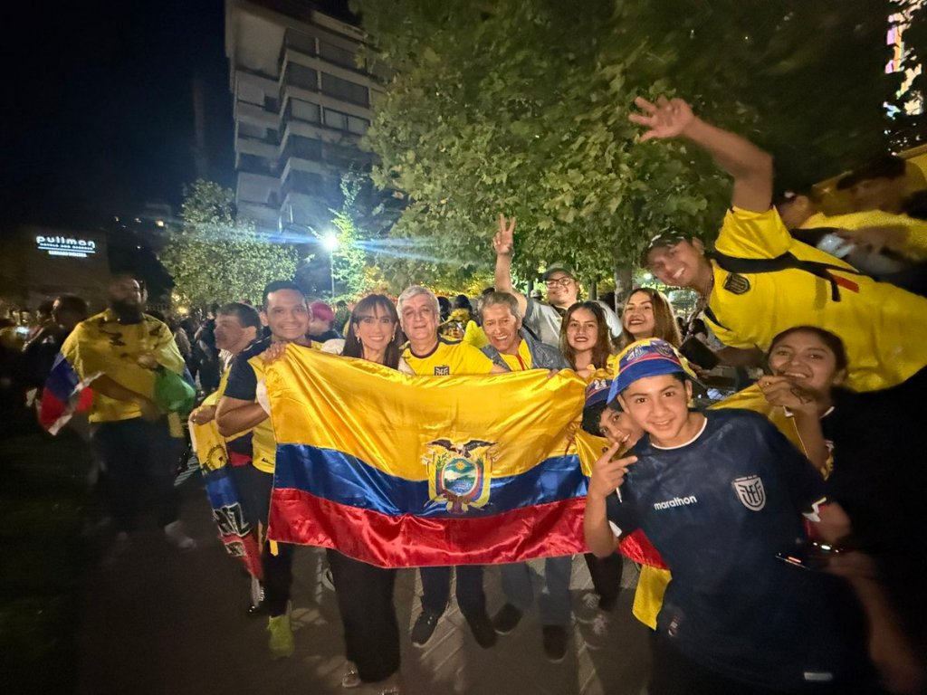La pasión por la Selección Ecuatoriana se hace sentir en Chile. Un gran número de hinchas ecuatorianos se han congregado en las afueras del hotel Pullman en Vitacura, donde La Tri concentra de cara al partido de Eliminatorias ante la Selección Chilena. Con el pasar de los minutos, el ambiente se ha ido encendiendo con la llegada de más aficionados, quienes alientan con cánticos y banderas.