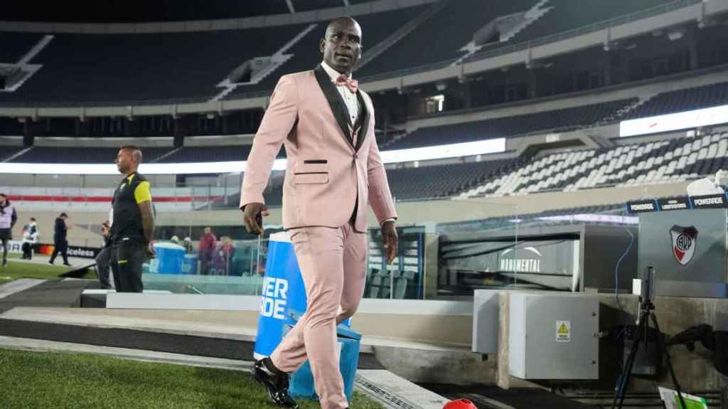 En su visita al Monumental de Buenos Aires con Barcelona SC, «Sir Second Castle» no falló y eligió un smoking rosado. El DT del equipo ecuatoriano tuvo un positivo intercambio con Marcelo Gallardo, DT de River Plate, minutos antes del comienzo del cotejo en Argentina.