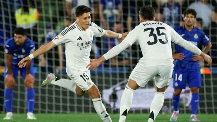 Francisco García fue el primero en avisar, cuando definió tras un centro de Vinicius y el arquero Soria logró desviar el remate. Sin embargo, el tan esperado gol tranquilizador llegó al rato, cuando Arda Güler, desde afuera del área, la clavó contra el palo con un bombazo inatajable.