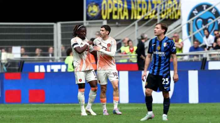 Inter desperdició la oportunidad de recuperarse, perdió 1-0 ante Roma en el Giuseppe Meazza por la fecha 34 de la Serie A y comprometió sus posibilidades en el campeonato en la lucha mano a mano con Napoli en lo más alto de la tabla de posiciones. El único gol del encuentro lo convirtió Matías Soulé.