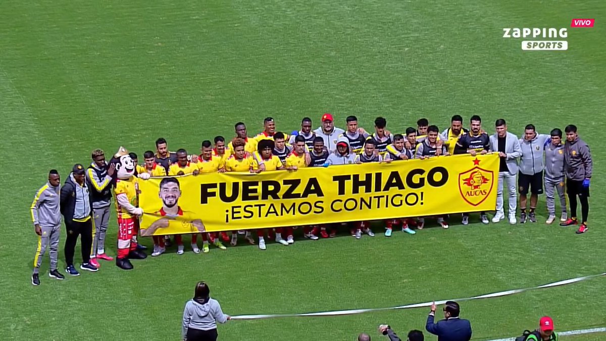 Sociedad Deportiva Aucas mostró su apoyo a Thiago Serpa con un emotivo gesto antes del partido ante Manta FC. Los jugadores saltaron al campo con un cartel que decía: «FUERZA THIAGO, estamos contigo», en respaldo al defensor, quien sufrió una luxación de tobillo y fractura de tibia y peroné en el duelo anterior frente a Emelec.