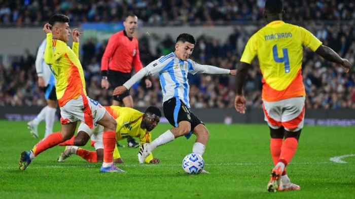 Con el 1-1 en el marcador, el partido estaba completamente abierto, porque Colombia trataba de reaccionar, aprovechando la superioridad numérica, y Argentina tampoco resignaba su ataque, pese a mandar a la cancha a Leonardo Balerdi sobre la hora (se quedaron en el banco, entre otros, Lautaro Martínez y Mastantuono). Ríos tuvo, de cabeza, el 2-1, pero falló, y finalmente el marcador no se volvió a mover.