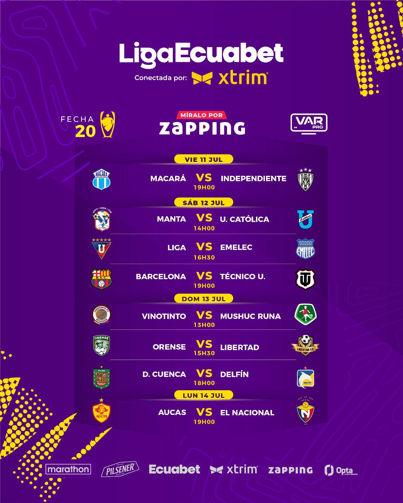 Fecha 20 en la Fase Inicial, el líder Independiente del Valle abrió la fecha visitando a Macará y se aseguró terminar la fecha como líder. La presión pasa a Barcelona que recibirá a Técnico Universitario y Liga de Quito local ante Emelec, ambos juegos el sábado.