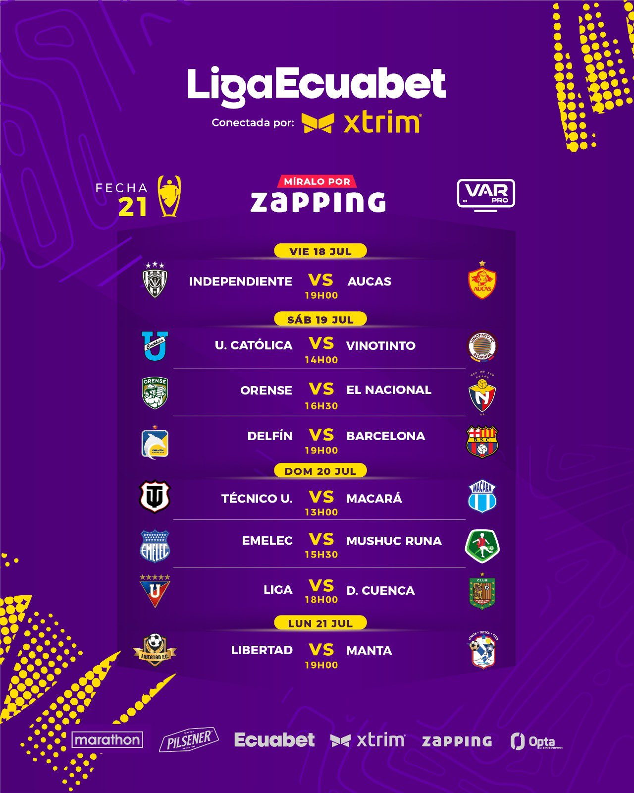 Fecha 21 en la Fase Inicial, el líder Independiente del Valle abrió la fecha recibiendo a Aucas y volvió a asegurarse la punta de forma temprana. La presión pasa a Barcelona que visitará al Delfín y a Liga de Quito que recibe al Deportivo Cuenca.