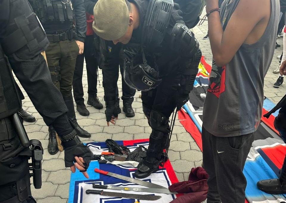 La Policía Nacional del Ecuador, tras un operativo de control y seguridad, detectó la tenencia de armas blancas en posesión de integrantes de dos facciones de la hinchada visitante.