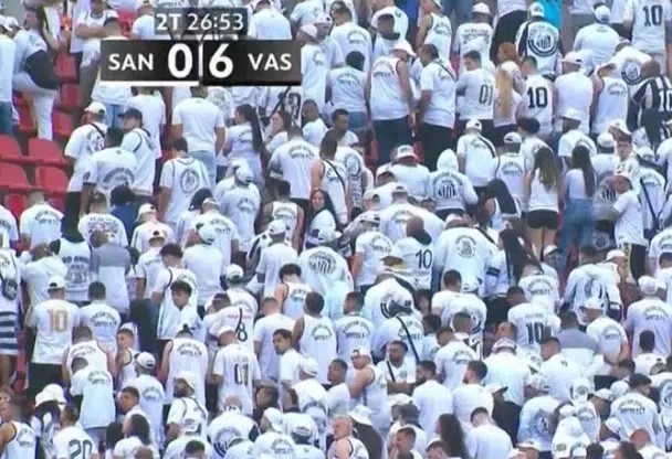 El Santos vivió una de sus noches más tensas y dolorosas de su historia. Los hinchas, indignados por el rendimiento de su equipo, se pusieron de espaldas a la cancha como señal de protesta mientras el “Peixe” caía estrepitosamente 0-6 ante Vasco da Gama por la fecha 20 del Brasileirao.