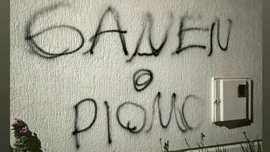 El padre del jugador, Pablo González, dijo este sábado a radio Monumental que, según las cámaras de seguridad de la residencia, la pintada fue hecha alrededor de la 1 de la mañana por dos personas que llegaron en una moto.