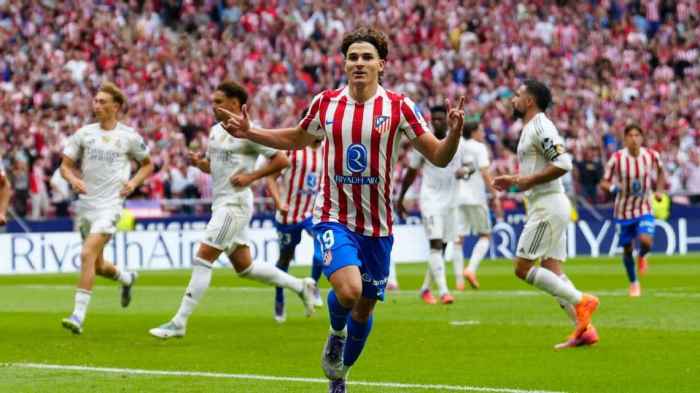 Atlético reaccionó de inmediato: en el 38, Julián Álvarez probó primero con un disparo de media distancia que se estrelló en el palo izquierdo de Courtois. Cuatro minutos después, los locales celebraron un tanto que parecía el empate, pero el VAR lo anuló por mano de Lenglet. La insistencia tuvo premio en la última jugada de la primera parte: otra vez por arriba, Sorloth ganó en el aire y firmó el 2-2.