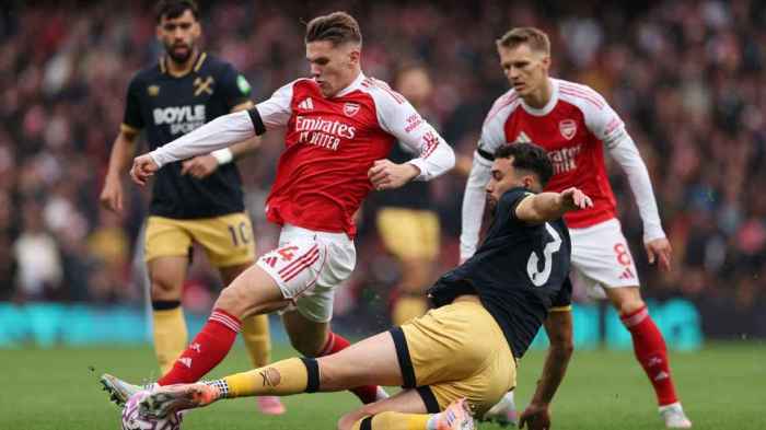 Malas noticias tempraneras para Arsenal, ya que a los 30 minutos Martin Odegaard pidó el cambio. Tras una jugada 10 minutos antes en la que quiso cortar un avance de West Ham, el noruego cruzó con la pierna izquierda y golpeó con su rodilla al final, lo que le provocó un fuerte golpe y por eso entró en su reemplazo Martin Zubimendi.