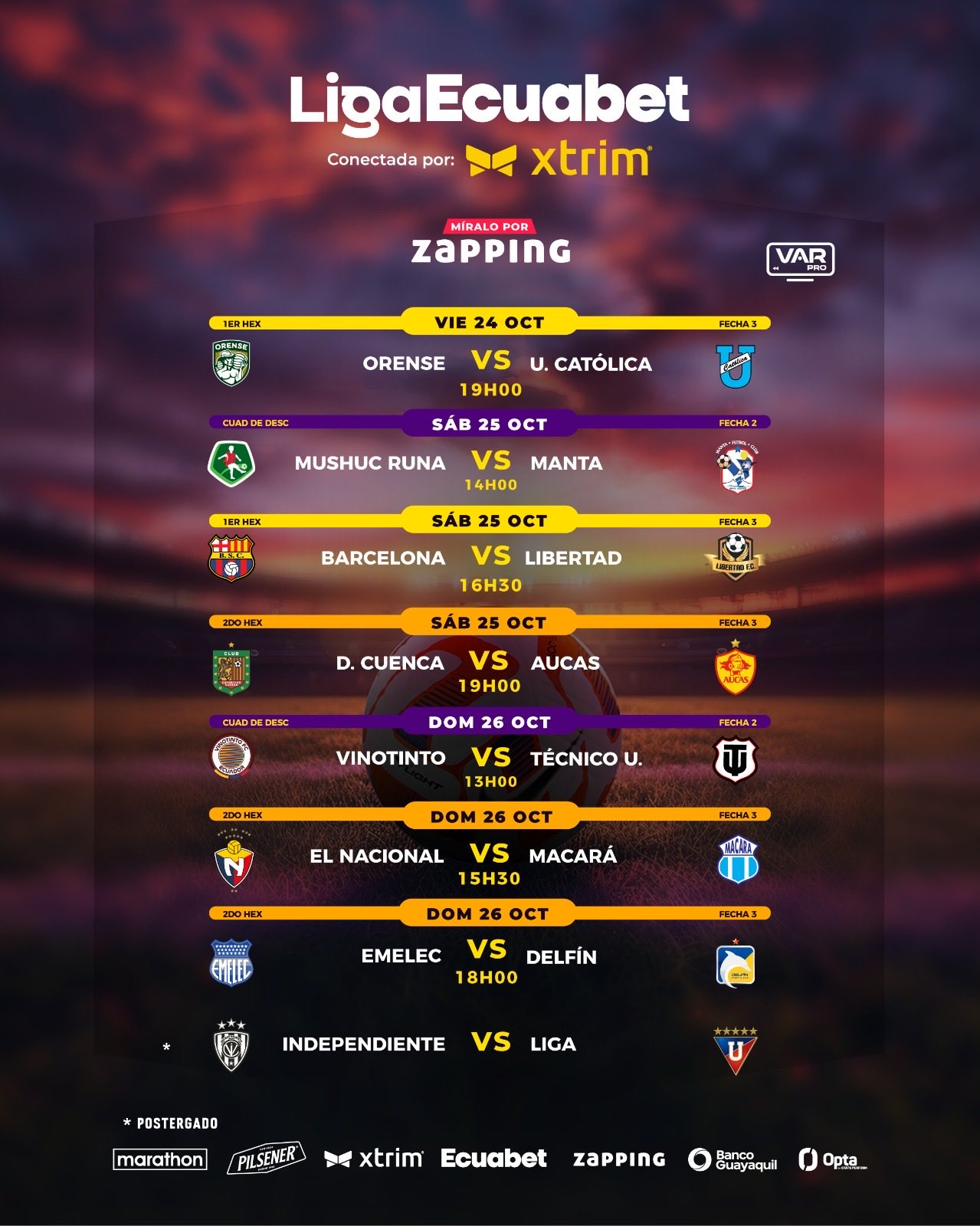 Fecha 3 para los Hexagonales, con la novedad que se postergó el partido entre los líderes, por ello la atención se centra en el duelo que abre la jornada entre Orense y Universidad Católica este viernes y para el sábado, Barcelona recibiendo a Libertad.