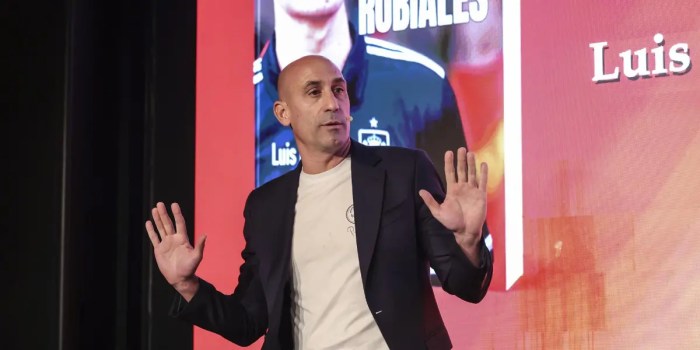 Rubiales presenta este jueves en Madrid su libro, en el que repasa su gestión al frente de la RFEF (2018-2023) y da su versión sobre lo ocurrido en la final del Mundial femenino de 2023 con la jugadora internacional Jennifer Hermoso, a la que besó sin su consentimiento en el momento de la celebración del título conseguido por España.