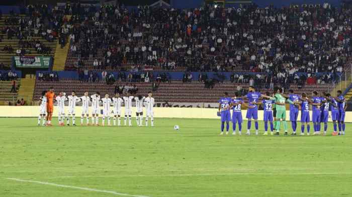 Los futbolistas de Liga de Quito y Universidad Católica se pararon en la mitad de la cancha del Estadio Olímpico Atahualpa para guardar un minuto de silencio a Mario Pineida.