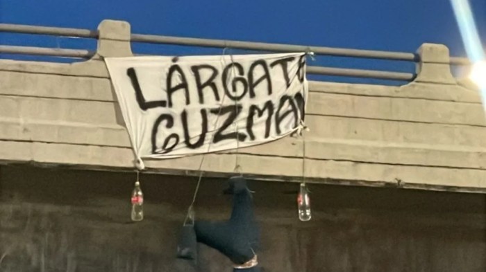 Un monigote colgado en un puente del sur de Guayaquil y un cartel exigiendo la salida de Jorge Guzmán marcaron una nueva jornada de tensión en los alrededores del estadio George Capwell.