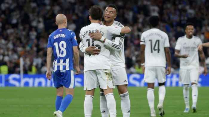 Real Madrid superó a Alavés por 2-1 en el Estadio Santiago Bernabéu por la fecha 32 de LaLiga 2025/2026. Los goles del triunfo fueron Mbappé y Vinicius, que pidió perdón después de lo que fue la eliminación del Merengue de la UEFA Champions League. El equipo de Álvaro Arbeloa quedó a seis del líder FC Barcelona, con un partido más.